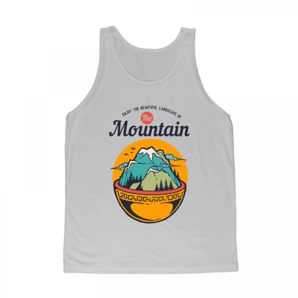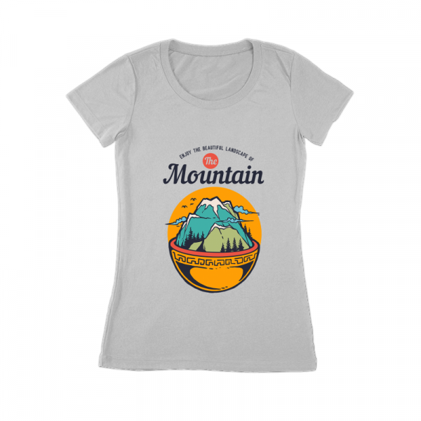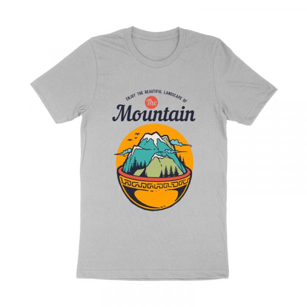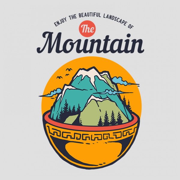 Vector illustration of food bowl with mountain and beautiful landscape inside it. Ready to print on t-shirt.