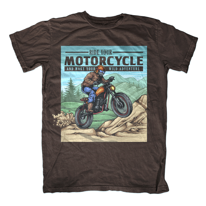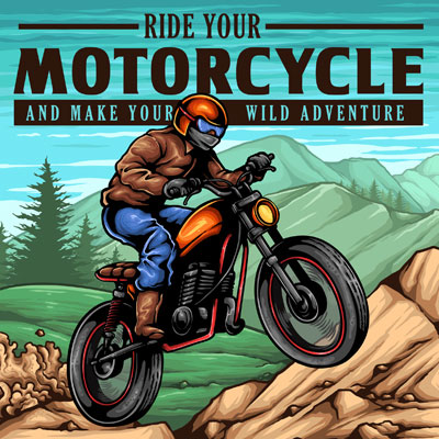 Vector illustration of retro vintage biker riding on mountain. Ready to print on t-shirt.