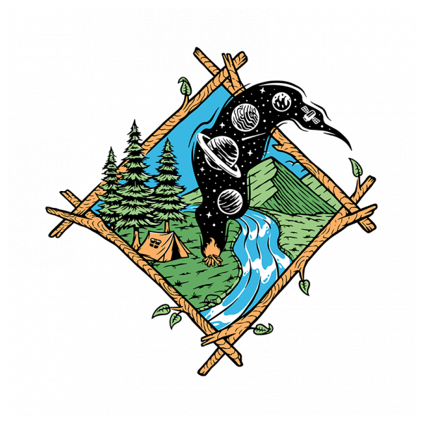 Mountain view and space campfire