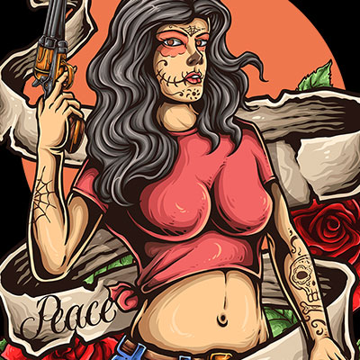 Muerte Gangster Woman Tattoo Design
