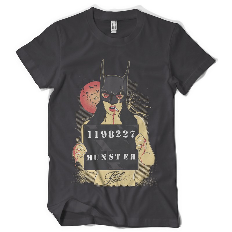 Munster printed t-shirt features a detailed screen print of drunk bat girl now available for Adobe Illustrator, Adobe Photoshop and Corel Draw and can be used for digital printing and screenprinting . Ready to print or use in anything you want.