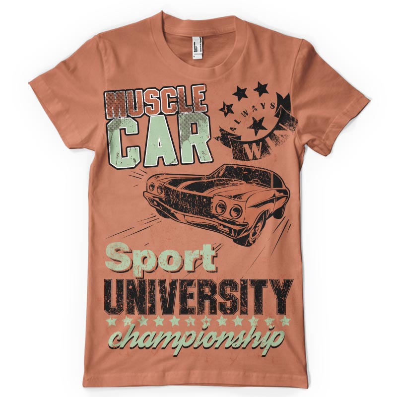 Muscle car t-shirt print features a detailed design available for Adobe Illustrator, Adobe Photoshop and Corel Draw and can be used for digital printing and screenprinting . Ready to print or use in anything you want.