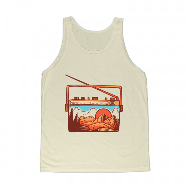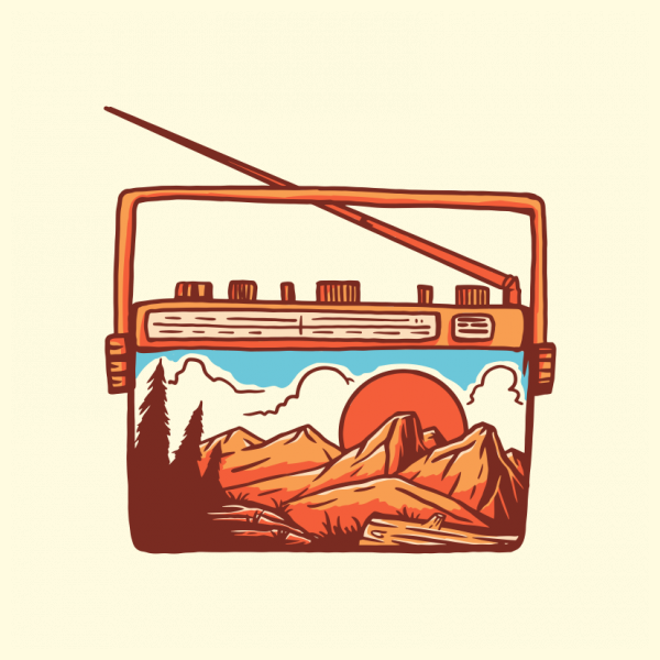 Music for The Nature is a vintage illustration that is suitable for t-shirts, jackets, or merchandise with the theme of mountain, national park, travel, vacation, nature, camping, hiking, outdoors, music, sound, retro, radio, audio, karaoke, musical.