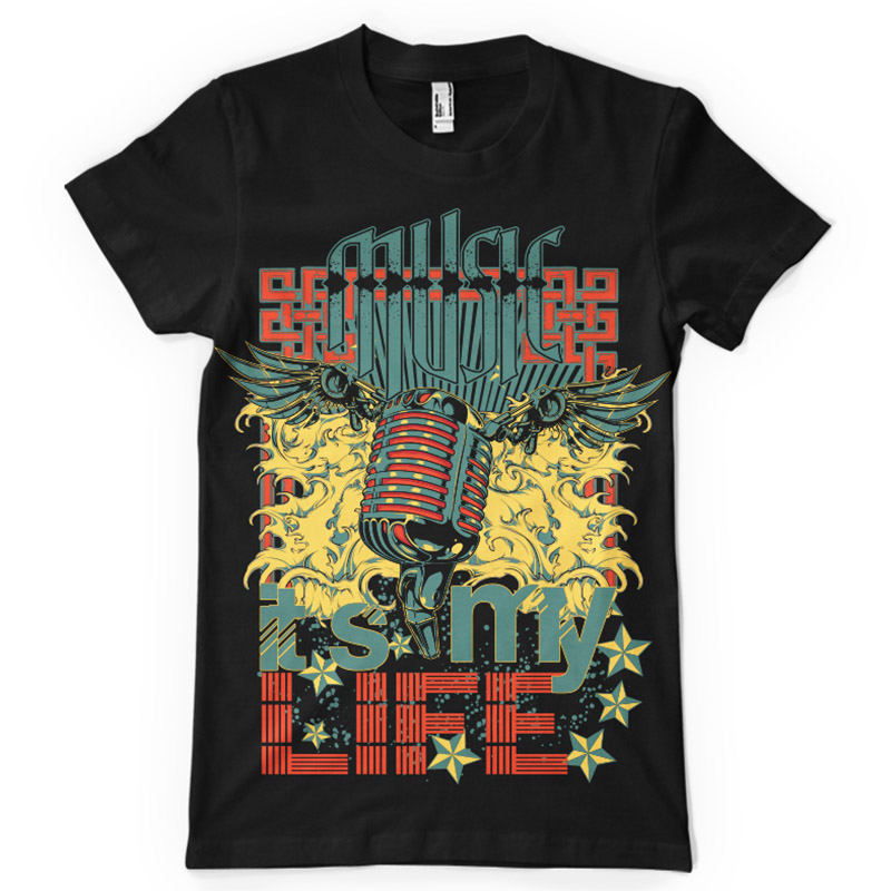 Music it's my life print features a detailed design available for Adobe Illustrator, Adobe Photoshop and Corel Draw and can be used for digital printing and screenprinting . Ready to print or use in anything you want.
