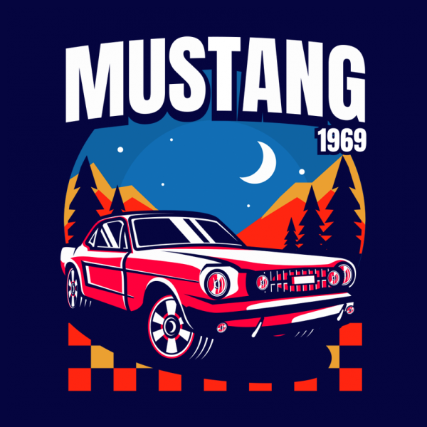 Mustang Mach 1969 ready to print PSD, PDF and PNG Transparent Background. All file high resolution file.