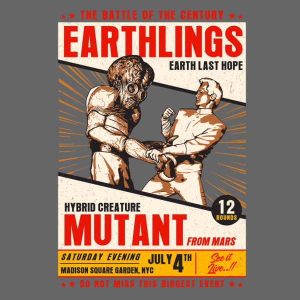 This design “ mutant fight ” is made in Adobe Ilustrator is ready for print.
