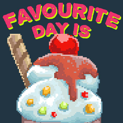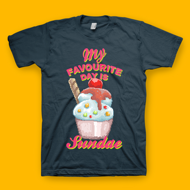 My favourite day is sundae. Inspired from the retro video game box art mixed with fun quotes and ice cream illustration. Made with pixel art illustration.