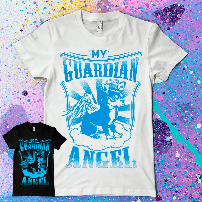 My Guadian Angel t-shirt design features a dog angel design detailed screen print now available for Adobe Illustrator, Adobe Photoshop and can be used for digital printing and screenprinting.