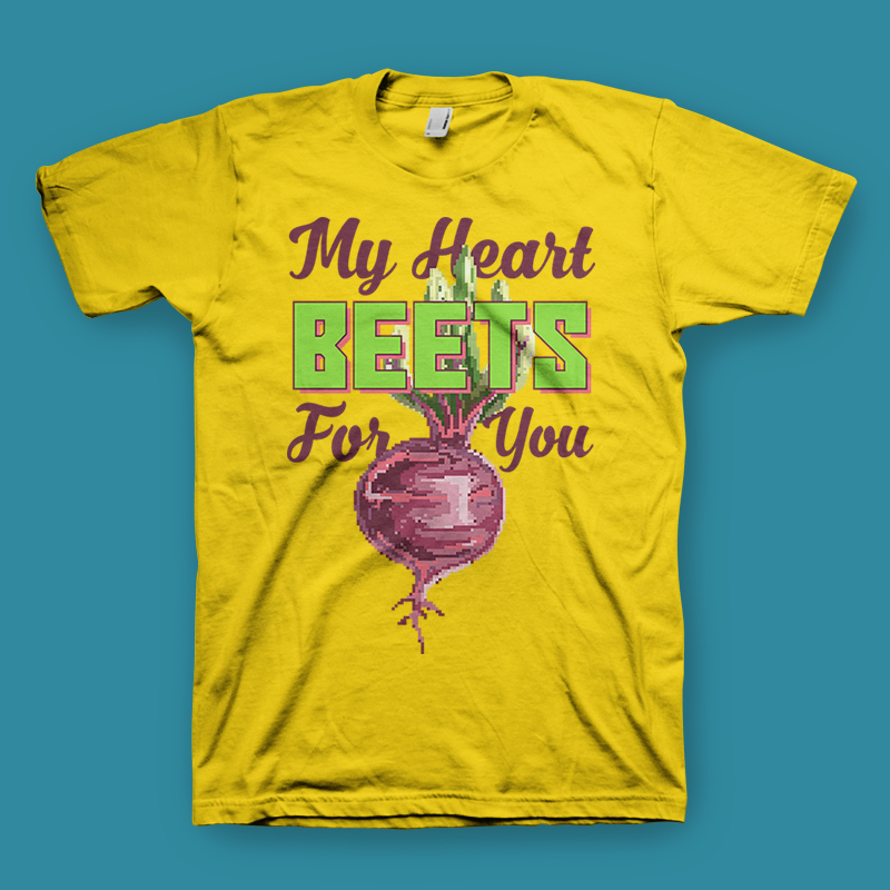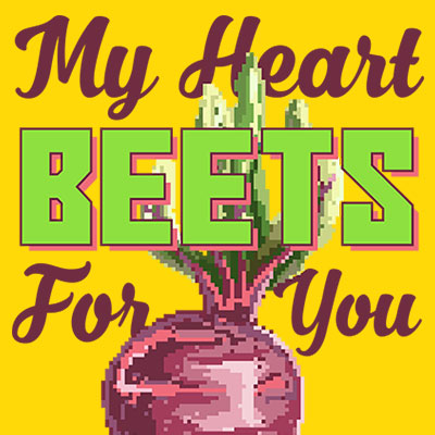 My Heart Beets For You Food Puns. Inspired from the retro video game pixel art mixed with funny quotes and beet fruit cartoon illustration. Made with pixel art illustration.