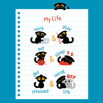 Describe your life with this sarcastic fun kitty list, work & play, eat & sleep, get stressed & social life. A classic young life ^^