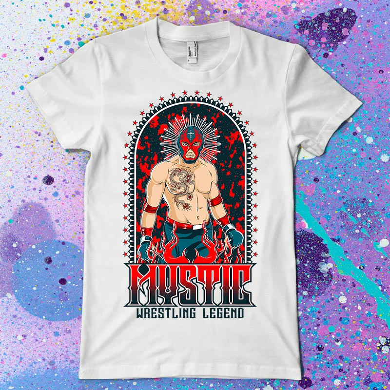 Mystic t-shirt design features a wrestling design detailed screen print now available for Adobe Illustrator, Adobe Photoshop and can be used for digital printing and screenprinting.