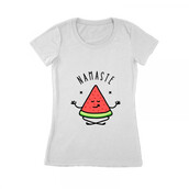 Is a monoline illustration that is suitable for apparel or merchandise about watermelon, fruit, food, dessert, summer, vacation, holiday, beach, sport, yoga, namaste, meditation, fitness, spiritual, relaxation.