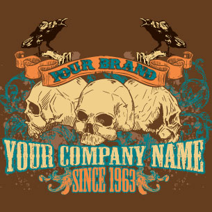 Name your company is a t-shirt design featuring skulls, flourish elements of death, birds and you can easily add your brand name.The file will be available in vector format for Adobe Illustrator, Adobe Photoshop and Corel Draw and can be used for digital printing and screenprinting .