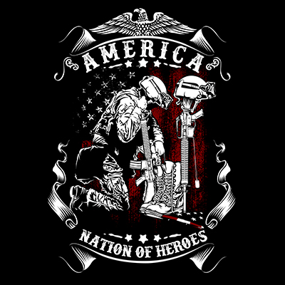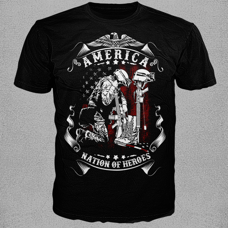 Nation of Heroes Designed in psd. easy editable font (attached original font link 100% free for personal ) vector art so colors and size very easy editable for any shirt colors.