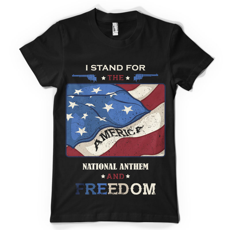 National anthem is an illustration made in Adobe Illustrator,featuring the american flag with a message.It can be used on digital printing,screen printing and T-shirt design and it is available in PSD,EPS,AI and PNG format file.