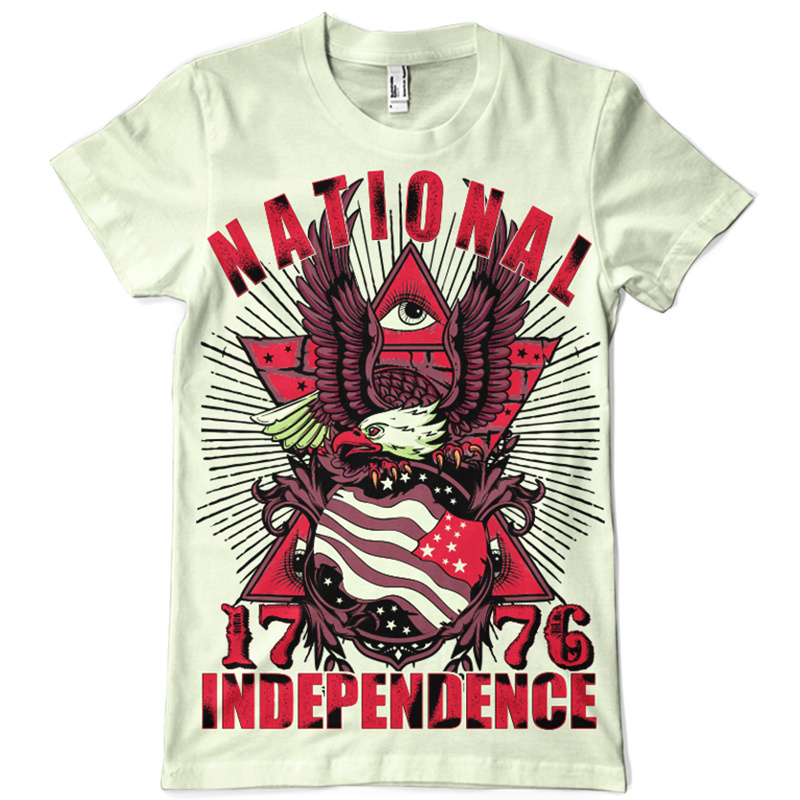 National independence printed t-shirt features a detailed screen print of eagle of freedom now available for Adobe Illustrator, Adobe Photoshop and Corel Draw and can be used for digital printing and screenprinting . Ready to print or use in anything you want.
