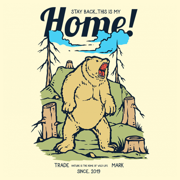 Vector illustration of angry bear on the deforestation jungle. Ready to print on t-shirt.