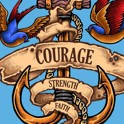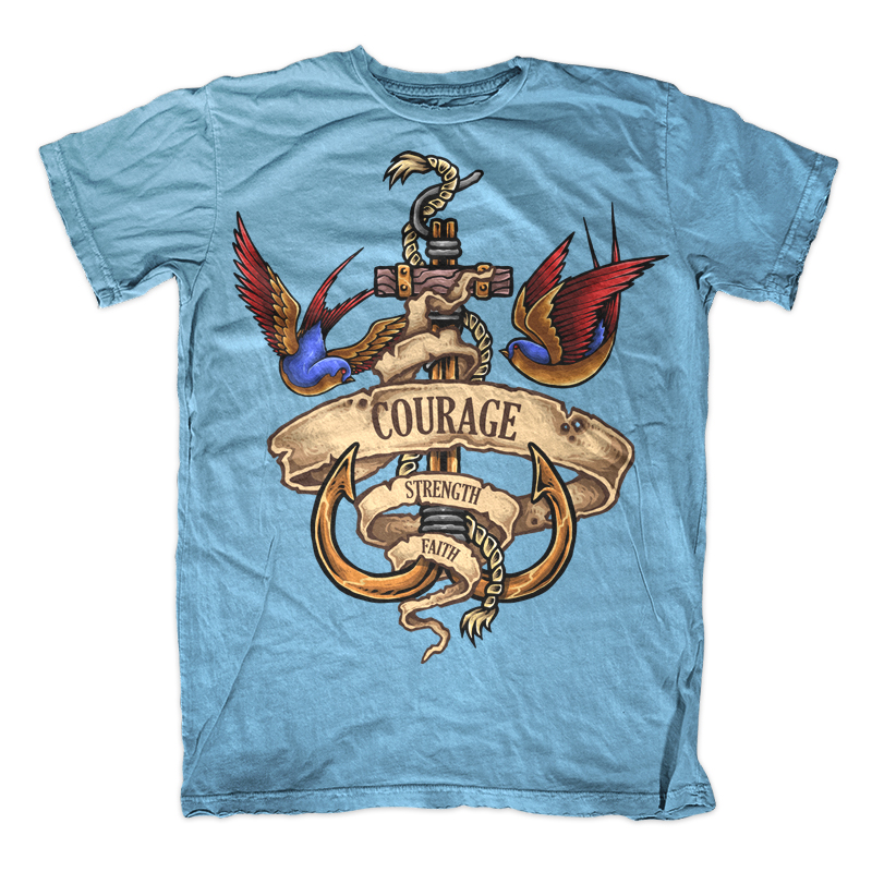 Vector illustration of anchor, bird and rope made with vintage tattoo style drawing. Ready to print on t-shirt.