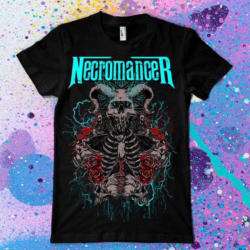 Necromancer t-shirt design features a skull god design detailed screen print now available for Adobe Illustrator, Adobe Photoshop and can be used for digital printing and screenprinting.
