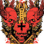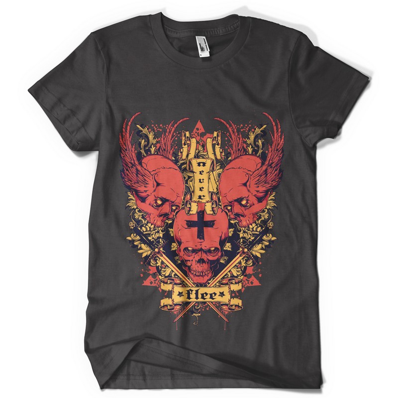 Never free graphic design template in vector format, featuring detailed evilish red skulls now available for Adobe Illustrator, Adobe Photoshop and Corel Draw and can be used for digital printing and screenprinting .