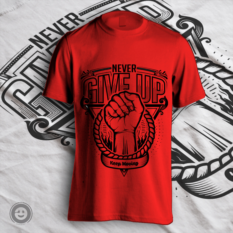 Never give up Tshirt Design Template based on vector files , such as AI and CDR file, the design has 1 color print, it can be used for digital printing and screen printing.