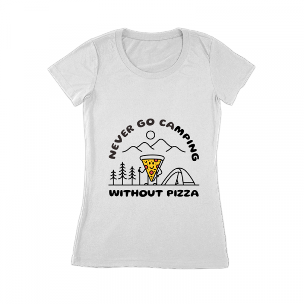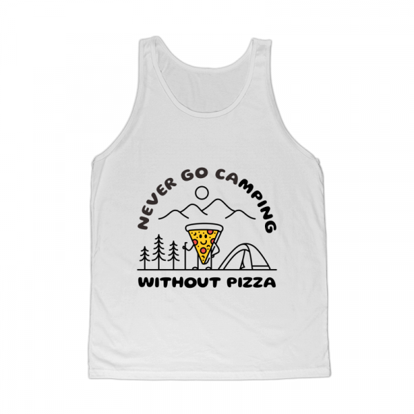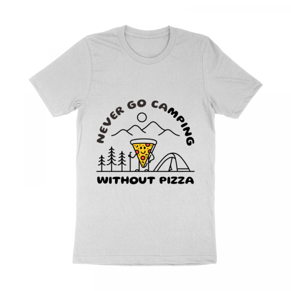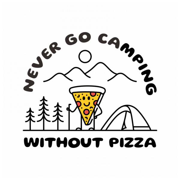 Never Go Camping Without Pizza is an monoline illustration that is suitable for apparel or merchandise about nature, outdoors, adventure, holiday, camping, camper, backpacker, vacation, travel, character, food, pizza, pizzeria, fast food, italy.
