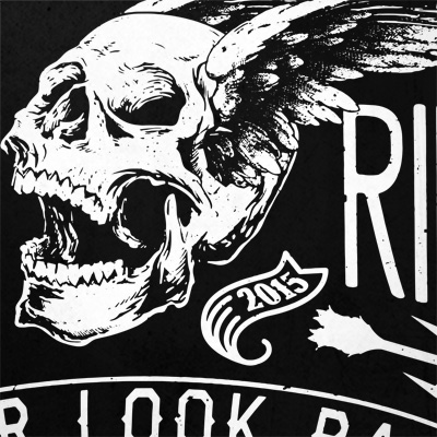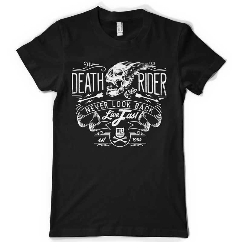 Never look back t-shirt designs fearuting detailed skul, typography, text and ribbons. The files are available for Adobe Illustrator, Adobe Photoshop and Corel Draw and can be used for digital printing and screenprinting .