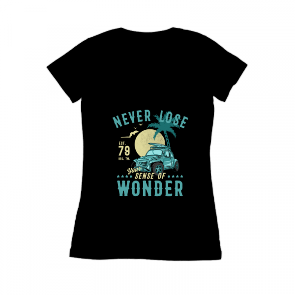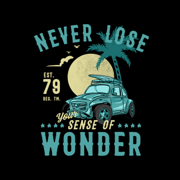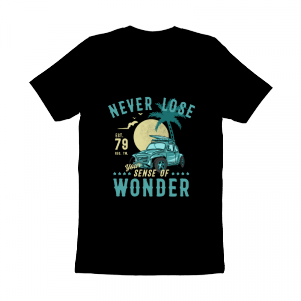 This design “never lose your sense of wonder ” is made in Adobe Photoshop is ready for print.