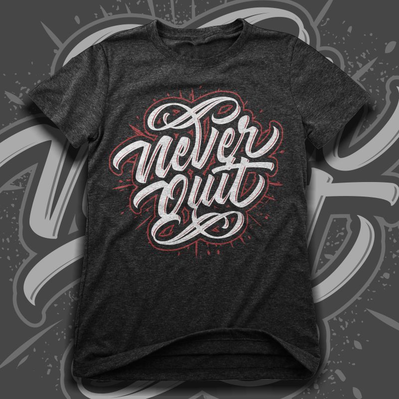 "Never Quit" Typography style t-shirt design.