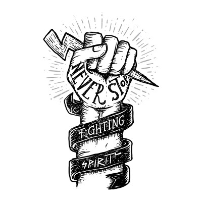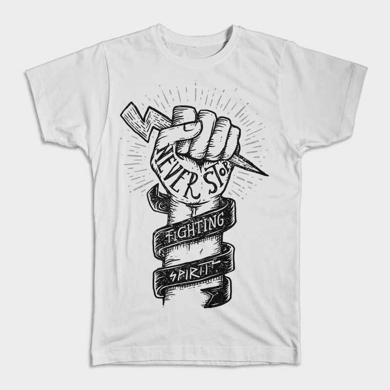 "Never stop fighting spirit" T-shirt design use 2 color on black or white with AI 10 and EPS 10 file and separate color layer by layer. For recomended apply to front print.