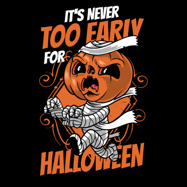 "Never too early for halloween" design is available in high quality formats:SVG and PNG files.Vector files are completely editable. The fonts used are 100% free for personal and commercial use.Can be used for both digital (DTG) and screen printing.