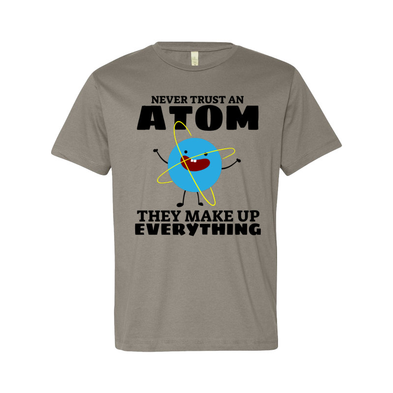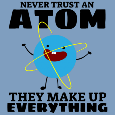 "Never trust an atom" design is available in high quality formats: