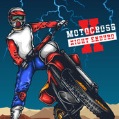 Vector illustration of motocross extreme sport biker riding in the night and storm. This illustration will be great to print for your motocross enduro community. Ready to print on t-shirt.
