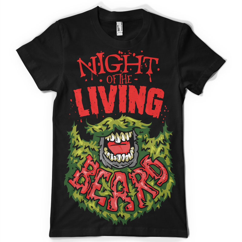 Night of the living beard - T-shirt design in vector format.The artwork is featuring a zombie beard .This is an Adobe Illustrator file, ready for print. Files included are Eps. The template can be used for digital printing and screen-printing.The file is well organised with every element on it's own layer.