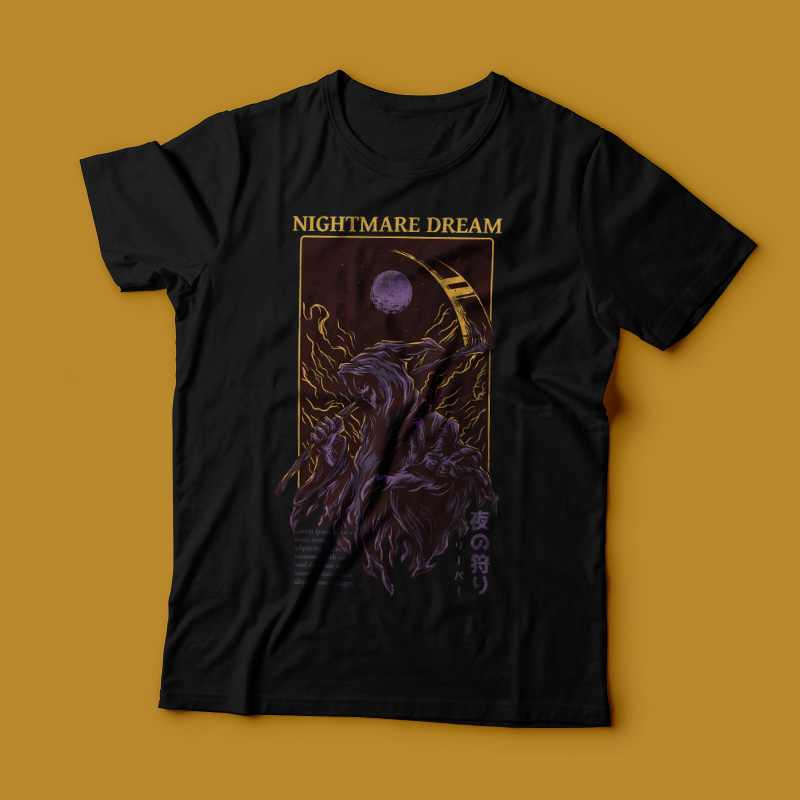 Nightmare Dream it's a character design that was made in Adobe Illustrator. Based on vector file, easy to resize and edit. File features AI, EPS, and PNG all in zip, CMYK color mode and 4 color. Can be used for digital printing and screen printing.