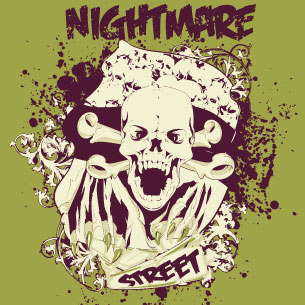 Nightmare digital design template in vector format, featuring detailed angry skull now available for Adobe Illustrator, Adobe Photoshop and Corel Draw and can be used for digital printing and screenprinting .
