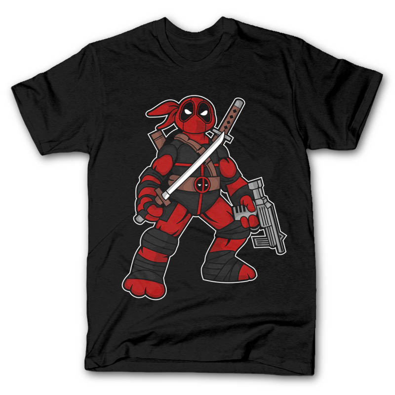 Ninja Deadpoolr Cartoon character style T-shirt design template , The file is AI , CDR, PSD separated Layers. Can be used for digital printing and screen printing.