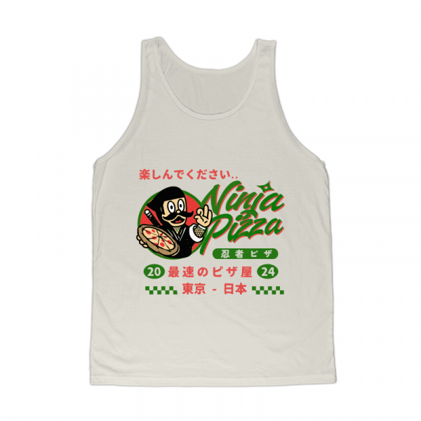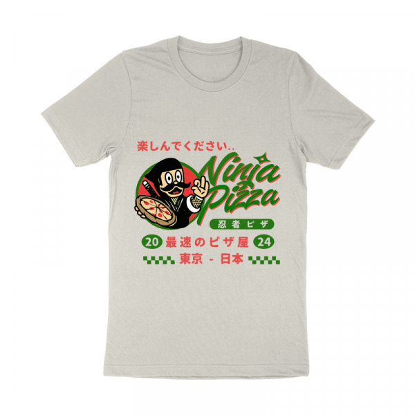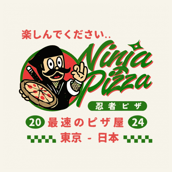 This design “ninja pizza” is made in Adobe Ilustrator is ready for print.