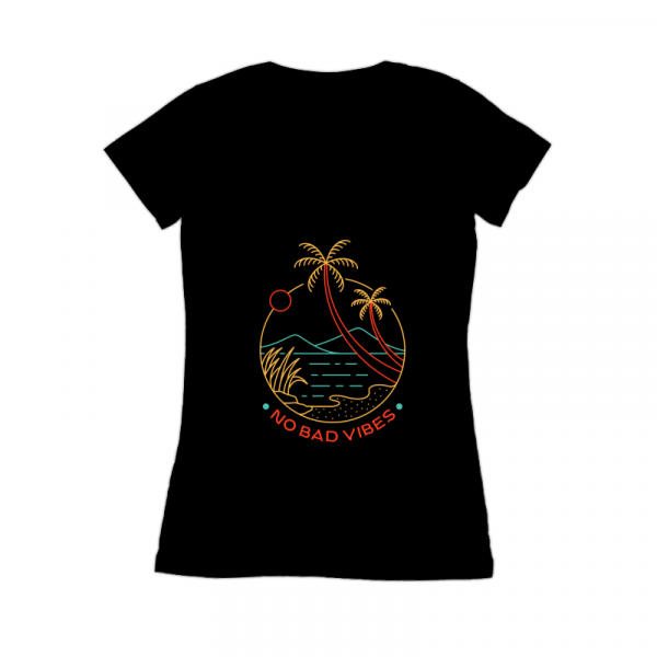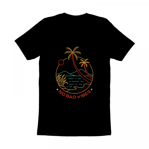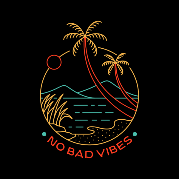 No Bad Vibes 1 Is a monoline illustration that is suitable for apparel or merchandise about summer, beach, vacation, holiday, travel, sea, ocean, tropical, california, nature, outdoor, surfing, quotes, hawaii, good vibes.