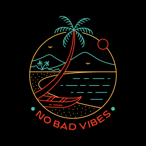 No Bad Vibes 3 Is a monoline illustration that is suitable for apparel or merchandise about summer, beach, vacation, holiday, travel, sea, ocean, tropical, california, nature, outdoor, surfing, quotes, hawaii, good vibes.