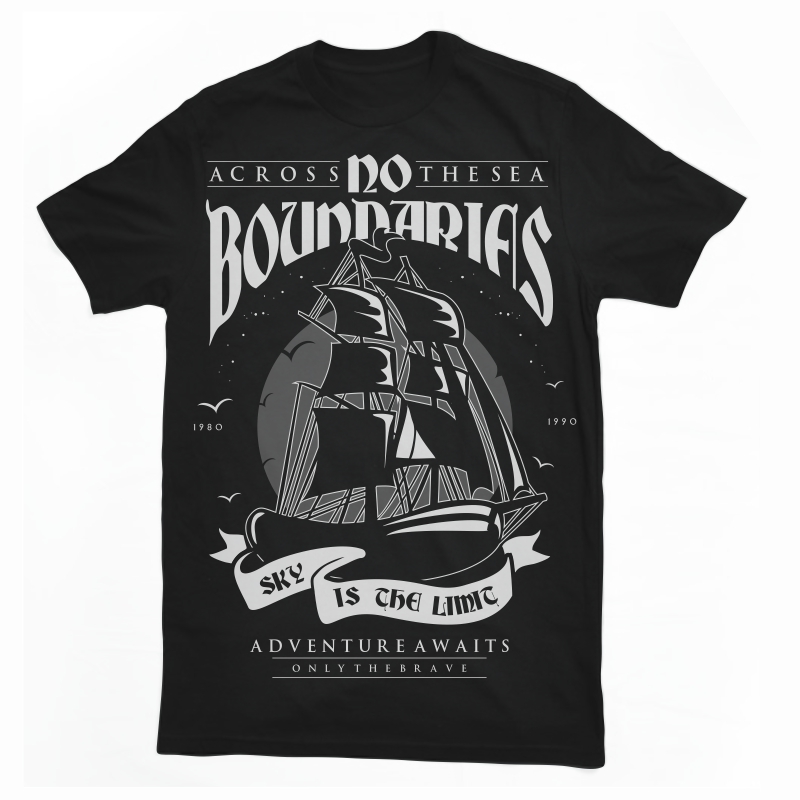 No Boundaries T-shirt design template with CorelDraw or Adobe Illustrator. 1 colour print, CDR,AI,PSD separated Layers. Can be used for digital printing and screen printing.