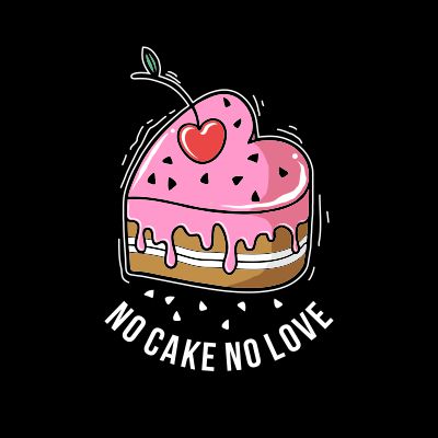 "No cake no love" T-shirt design featuring typography style illustration, with distressed details. The files available are suitable for corel draw, adobe illustrator and png (high resolution) and can be used for digital printing and screenprinting.