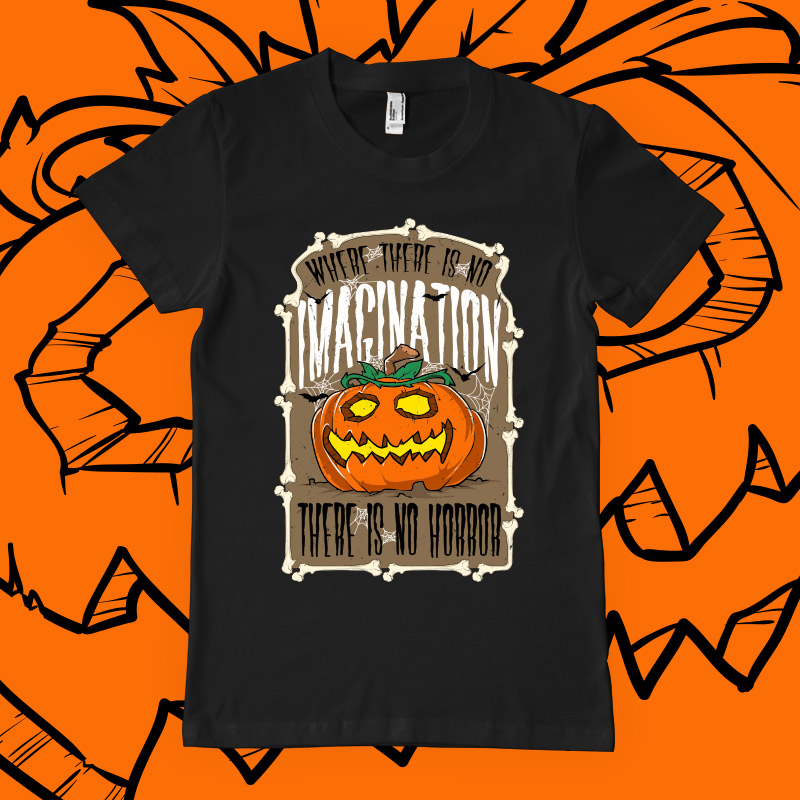 "No imagination, no horror" design is available in Ai, EPS and PNG. Ai & EPS files are well organised with every element on it's own layer. PNG file is with transparency. Can be used for digital printing and screenprinting.