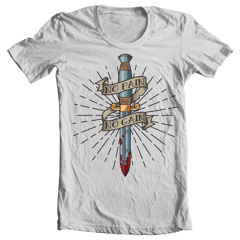 "No Pain No Gain" T-shirt this great quality artwork design Template with Adobe Illustrator, the file is vector and PNG separated Layers and full editable. Can be used for digital printing and screen printing and tatto
