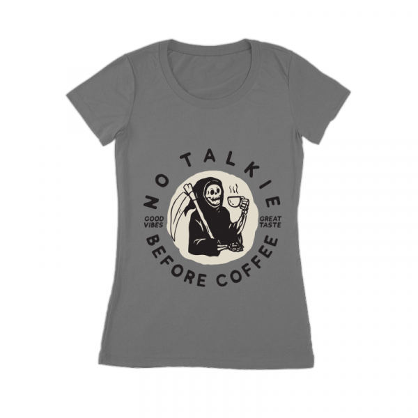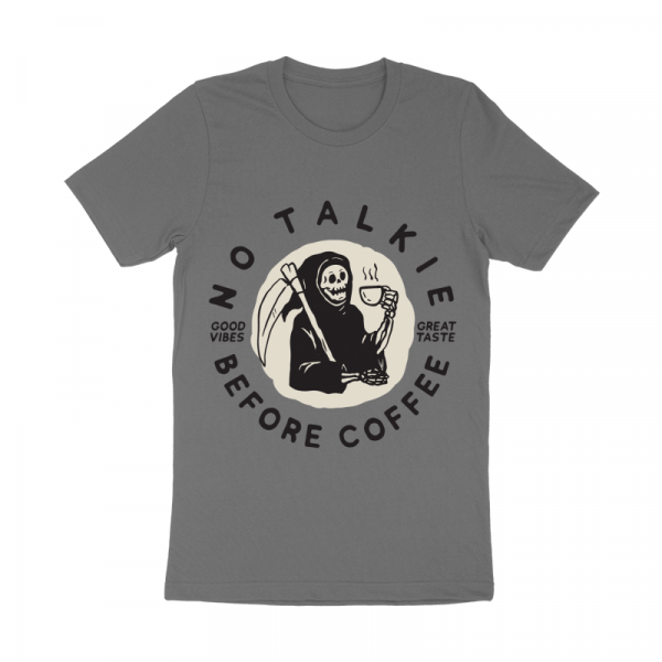 This design “ no talkie before coffee ” is made in Adobe Ilustrator is ready for print.