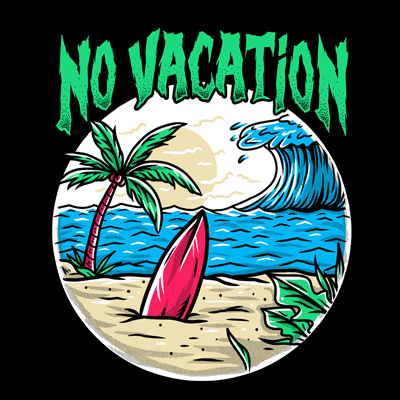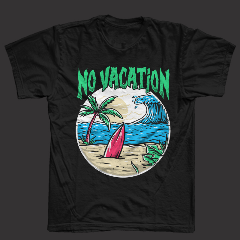 "No Vacation" design is done with Adobe Photoshop. The colors are separated on different layers, at 40 x 50 cm with 300 DPI. You can use it for digital printing and screen printing. Thank you for looking.