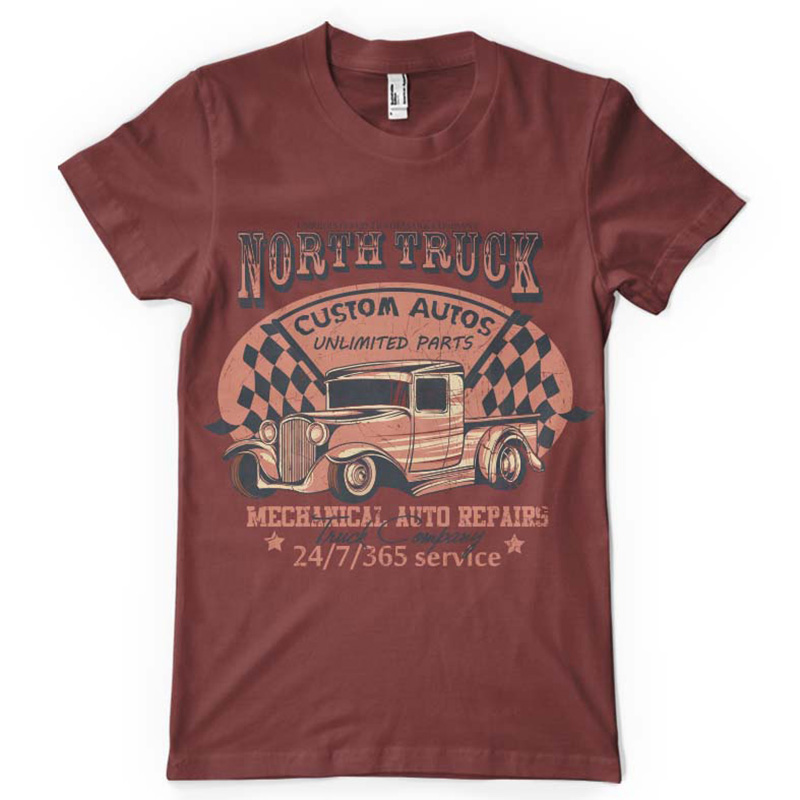 North truck printed t-shirt features a detailed screen print of classic automobile now available for Adobe Illustrator, Adobe Photoshop and Corel Draw and can be used for digital printing and screenprinting . Ready to print or use in anything you want.