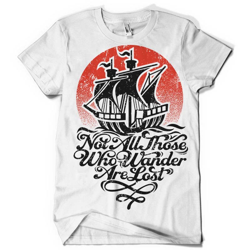 Not All Those Who Wander Are Lost Design created with Corel Draw and Adobe illustrator. 2 colour print, CDR,AI,PDF separated Layers. Can be used for digital printing and screen printing.