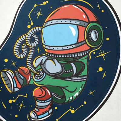 Not enough space is an illustration made in Adobe Illustrator,featuring an astronaut baby.It can be used on digital printing,screen printing and T-shirt design and it is available in PSD,EPS,AI and PNG format file.