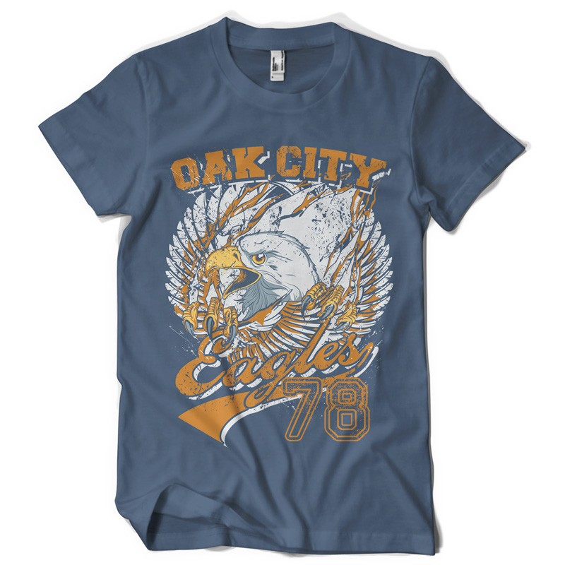 Digital design featuring detailed eagle of freedom . Oak City template is available in vector format and can be used for digital printing and screenprinting. The file will be available for Adobe Illustrator, Adobe Photoshop and Corel Draw